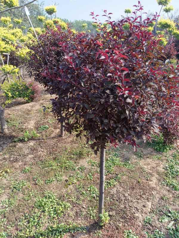 中规格红叶李球:高度在1.5米至2米之间,冠幅适中的红叶李球,价格适中,既能满足景观需求,又不会过于昂贵。