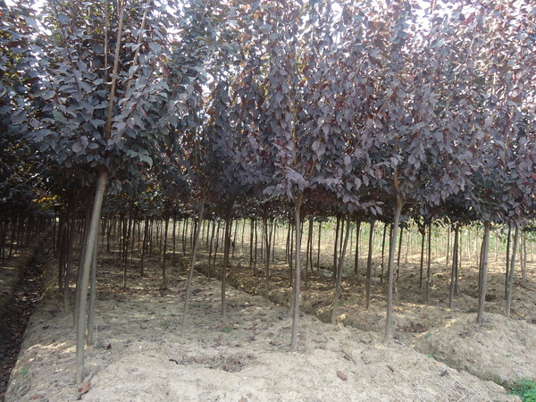 紫叶李多是被当做小乔木以及灌木种植的,它的植株高度比较高,能长到7、8米。而且,紫叶李的分枝多,枝条细且长,枝条的颜色偏暗灰色;而紫叶矮樱和紫叶李相比,植株高度比较矮小,一般只能长到2米多。而且,枝条的颜色偏向暗紫色。
