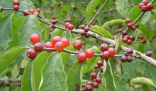 金银木这种植物是一种落叶灌木,它每年的五六月份开花,8~10月份是它的坐果期,霜降来临的时候它的叶片会枯萎掉落,冬季它的枝条上叶片全部掉落,但是在冬天它依然有观赏性,因为冬天它的果实有雪花的映衬观赏性极高。