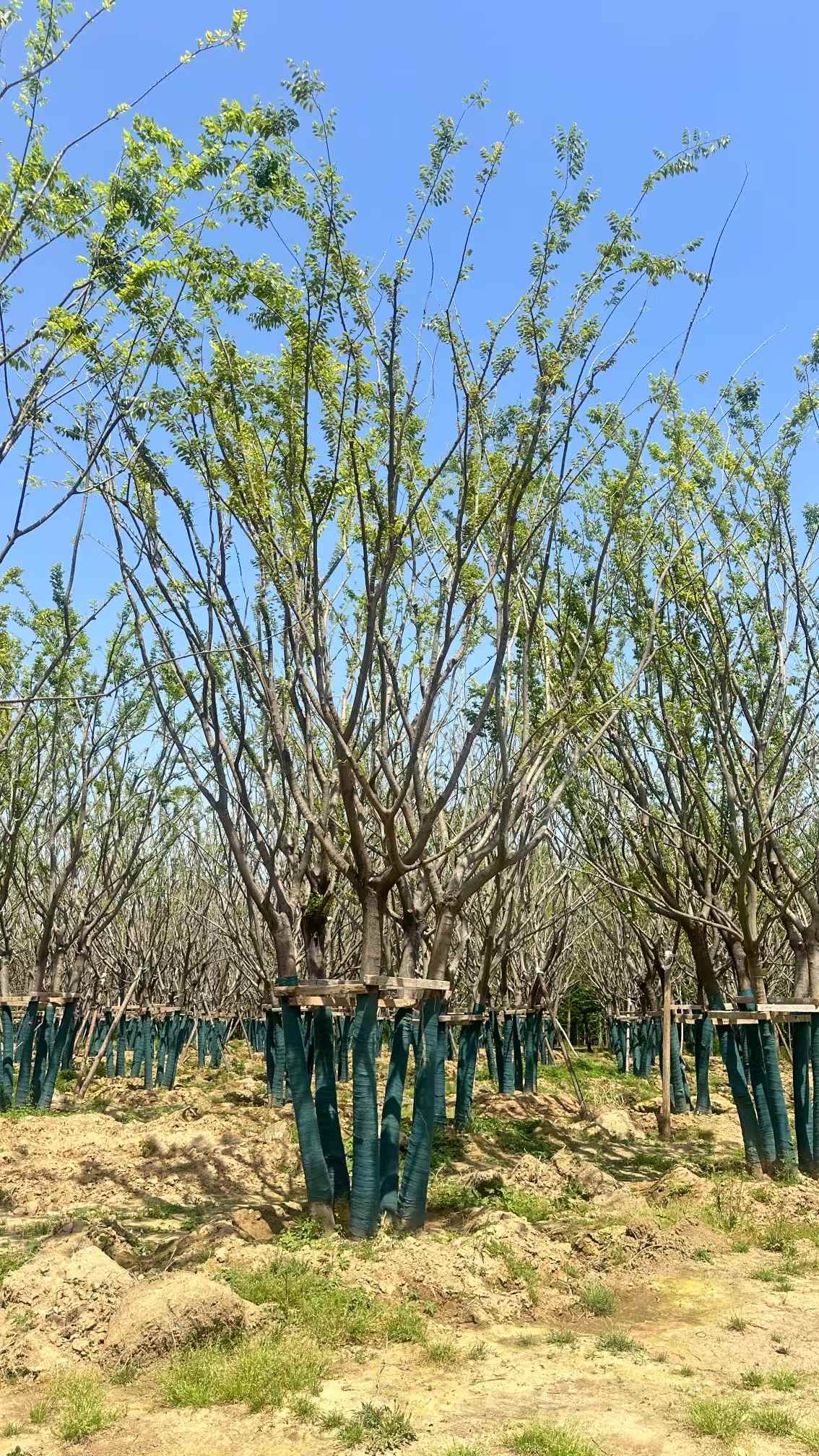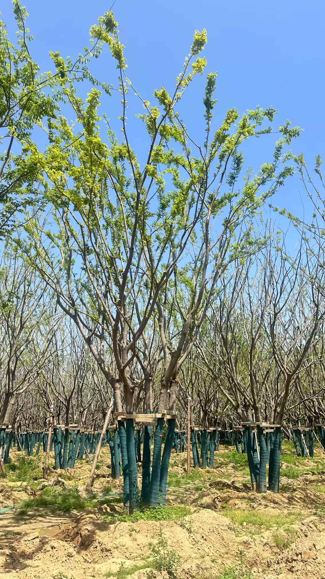 挖掘丛生朴树 5-7米时,根系完整性是成活的关键,丛生朴树属于深根性的树种,它的须根少、主根发达,因此需要优先选择生长在水源附近的植株,这类环境下的朴桩须根较多。起苗前可通过摇晃主干判断根系状况,如果晃动稳健,就说明四周有明显牵阻力,它的须根发达,如果反之成活率就低了。挖掘后修剪与消毒也很重要,剪除残枝及过长主根,侧根可用布条回拉塑形。根系用0.5%高锰酸钾溶液浸泡10分钟消毒,创口涂500ppm吲哚丁酸促进生根处理。..